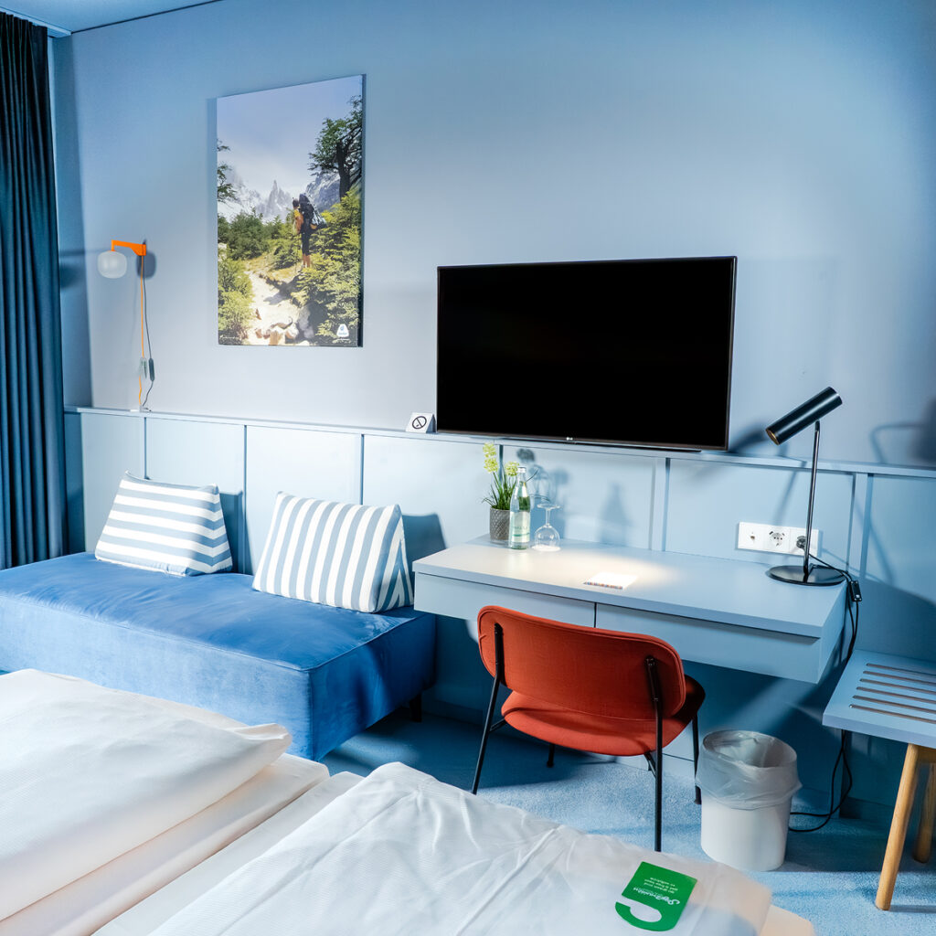 Freundliches Zimmer mit viel Platz, Sky-Sport & Smart-TV, extralangen Betten, Kitchenette, Arbeitsplatz, WLAN&LAN, Sofa oder Sessel, Safe, Badewanne u.v.m.