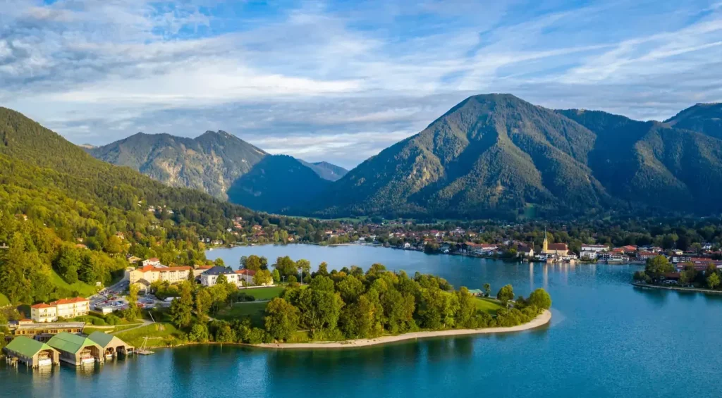 Knapp 50 Kilometer südlich von München liegt der Tegernsee – eine Distanz, die ambitionierte Radfahrer*innen durchaus an einem Tag bewältigen können. Der Weg lohnt sich weniger als sportliche Herausforderung, sondern vor allem wegen der Landschaft: Wiesen, Wälder und immer wieder der Blick auf die nahenden Berge machen die Fahrt kurzweilig. Dort erwartet einen einer der saubersten Seen Bayerns – das Wasser hat tatsächlich Trinkqualität!